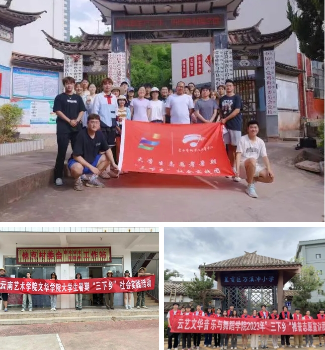 在大学生暑期“三下乡”实践活动中,学校团委组建28支实践团队,累计500余名师生奔赴云南、湖北、湖南、江西、四川等地开展“推普助振兴”“爱心支教团”等志愿服务活动,用实际行动服务边疆地区社会经济发展。其中“筑梦文创设计团”,用设计赋能红色文创,以创新延续红色精神,入选团中央“井冈情·中国梦”全国大学生社会实践专项行动;“‘泗’意成长,以礼益童”实践团队获云南省 2023 年“三下乡”社会实践活动优秀团队称号。