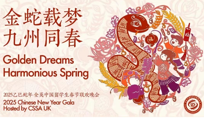 2025全英中国留学生春节联欢晚会,以“金蛇载梦 九州同春”为主题,通过精心编排的“金蛇迎春 盛世华夏”“福云万里 家国同心”“蛇舞四方 共创未来” 三大篇章,展开一场别开生面的视听盛宴,传递着辞旧迎新、送福迎春的美好祈愿 。中外艺术家们各展所长,凭借炉火纯青的精湛技艺和别具一格的独特创意,于时代的宏大画布上激情挥洒,勾勒出崭新时代的动人篇章。中英两国青年携手并肩,积极互动交流,向全球递出一张描绘双方携手前行、共创美好未来的蓝图。