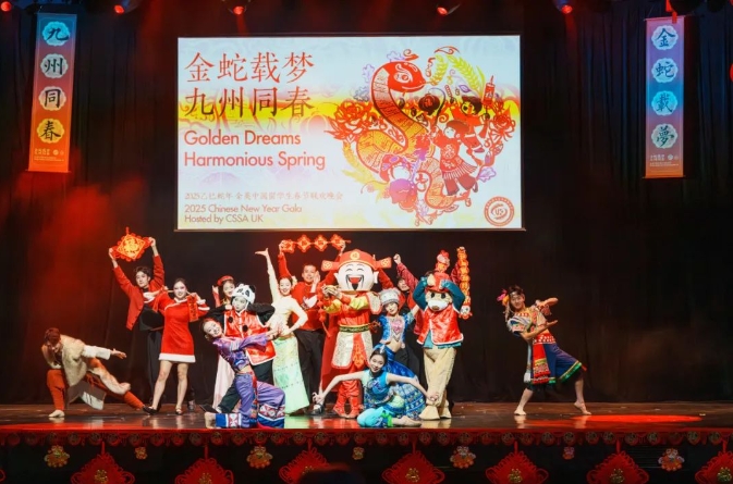 据悉,昆明传媒学院于2024年春节期间成立星辰艺术团并首次亮相2024全英学联春晚,并受邀参加英国伯明翰大学、谢菲尔德大学、纽卡斯尔东北五校等知名高校和地区的春节庆祝晚会,赴英国伦敦、布里斯托、朴茨茅斯等城市开展“昆明传媒学院社会公益学院海外巡演——英国站”。2025年,学校正式成为全英学联春晚协办单位,指导老师李月星、陈楠担任晚会指导团队官方节目指导,星辰艺术团由云南教育对外交流中心、云南教育国际交流协会进行专业指导。蛇年之际,星辰艺术团再次站上全英学联春晚的舞台,带着成熟的表演和饱满的热情,向世界呈现了一场更加精彩的文化盛宴。接下来,星辰艺术团还受邀参加剑桥大学、利物浦大学、纽卡斯尔东北五校、格拉斯哥大学等知名高校和地区的春节庆祝晚会,更多精彩节目将持续上演,文化传承的脚步将走遍全英,为增进中英文化交流续写新的篇章 。