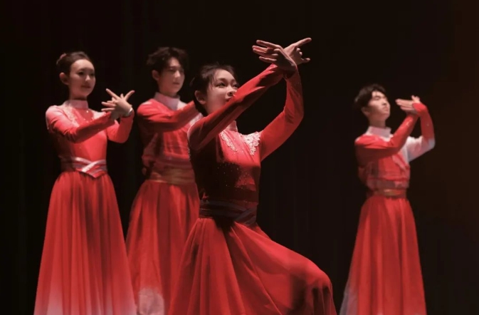 舞台上,昆明传媒学院星辰艺术团带来了佤族风情舞蹈《司岗里》。舞者们身着色彩斑斓、绚丽夺目的佤族服饰,每一个动作都刚劲有力,每一道眼神皆饱含深情,将佤族人民与生俱来的勇敢无畏、坚韧不拔以及对生活的炽热挚爱展现得淋漓尽致。当激昂澎湃的鼓点骤然响起,晚会瞬间被推向高潮。舞者们灵动飘逸的舞姿,生动鲜活地演绎出佤族人民辛勤耕耘的劳作场景与幸福美满的生活日常,仿佛在悠悠诉说着佤族源远流长的历史和光辉灿烂的文化。不仅让远在异国他乡的华人留学生们深切感受到来自家乡的温暖和民族文化的独特魅力,更以其独特的艺术感染力,向全世界展示了中华文化海纳百川的博大精深与多元包容。